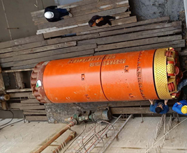 上海浦東三港雨水泵站臨排項目。直徑4590搖管機,井深14米,鋼護筒壁厚40mm。